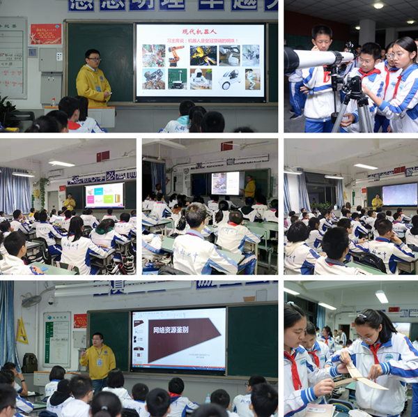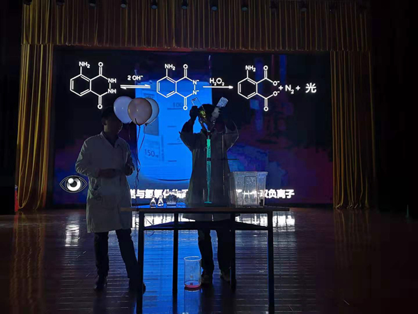 开幕仪式上,光电所幼儿园师生带来的科普情景剧《一起看星星》,讲述了一群小朋友从“发现星星”到“用望远镜看星星”,再到认识“不同口径的望远镜”的故事,启迪了小朋友们长大要当科学家的志向。成都生物所科研人员通过一系列趣味十足的化学实验,展示了黑暗中的荧光——鲁米诺的产生过程,与会同学惊叹于液光的神奇。成都山地所则以生动的语言科学诠释了九寨沟泥石流治理,讲解了九寨沟风景区背后的“守护者”——九寨沟风景区泥石流治理工程。随后,来自院属成都、重庆地区各单位科研人员围绕望远镜探究、两栖爬行动物探秘、无人机遥感应用、机器人与生产生活、扫码科普地图、好玩的数学等与初二学生进行分班互动。