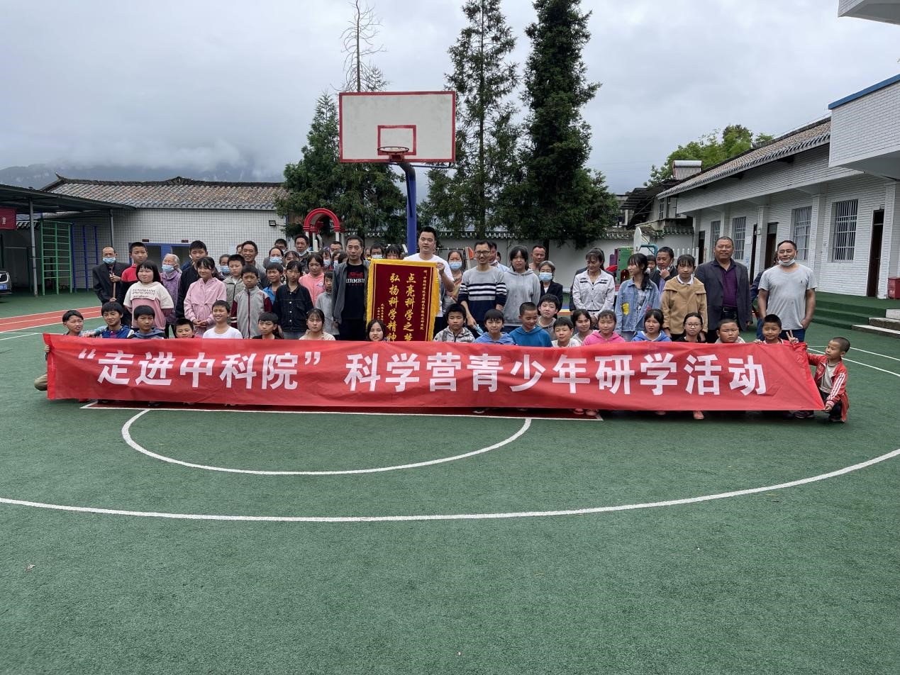 活动结束后,重庆市武隆区庙岭村长坡小学赠予重庆研究院“点亮科学之梦弘扬科学精神”的锦旗。