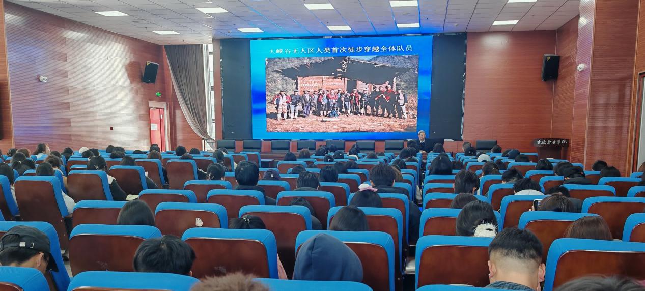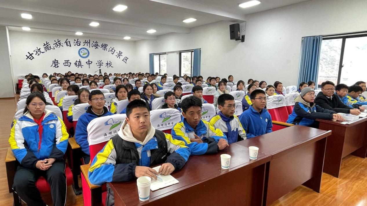张文敬先后到磨西镇中学校、甘孜职业技术学院给海螺沟的大中小学生进行了《我的“三极”(南极、北极、青藏高原)科考经历》讲座,向同学们展示了地理冰川景观的资源禀赋和恢宏壮观,呼吁同学们一起保护生态和水资源,从身边的小事做起,让冰川这个地球特殊的环境朋友与人类和平相处。讲座结束后,成都山地所向学校师生赠送了科普书籍。