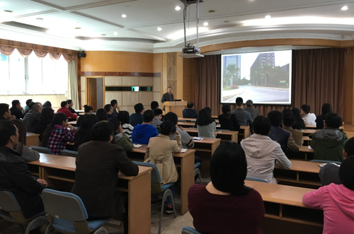 赵景柱首先以城市环境研究所园区为例介绍了景感生态学理念与物联网技术在规划、设计中的实际运用,结合他对古人智慧的敏锐思考,引入并介绍了“景感生态学”的思想和内涵,并形象地结合我国书法阐述了“趋善化模型”以及“迷码”数据的概念与应用,并结合物联网、物灵网的建设与感悟,阐述了生态文明的内涵、基本评价框架和趋善化模型评价框架,探讨了景感生态学与生态文明建设的思考。他希望年轻研究人员要虚心倾听、善于观察、总结发现规律并遵循自然规律。