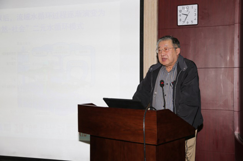 王浩院士围绕变化中的流域“自然-社会”二元水循环研究的提出、关键科学问题、主要研究内容、二元水循环及其伴生过程的综合模拟、流域水资源高效调控理论方法、海河流域水循环多维临界整体调控,以及海河流域水安全调控关键措施等方面深入阐述了“自然-社会”二元水循环的创新性研究成果。报告会上,王浩院士还同与会科研人员进行了互动交流。