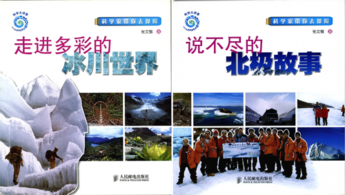 “科学家带你去探险”丛书是由人民邮电出版社于2011年9月推出,分为《走进多彩的冰川世界》、《说不尽的北极故事》、《探秘大香格里拉》、《挺进地球无人区》等4册。其中,《走进多彩的冰川世界》和《说不尽的北极故事》由成都山地所张文敬研究员所著。整套丛书生动讲述了科学家亲身经历的科学探险,这些科学探险活动也是近几十年来我国重要科学考察和重大科学发现的组成部分。该套丛书自出版以来,产生了较好的科学普及影响,并获得了2012年第二届中国科普作家协会优秀科普作品金奖。2014年11月4日,国家副主席李源潮在与科普创作工作者代表座谈时专门谈到了该丛书,并给予高度肯定。