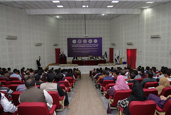 10月22日至25日,为有效落实联合国仙台减少灾害风险框架,由中国-巴基斯坦地球科学研究中心(以下简称:中巴中心)、国际水利与环境工程学会、巴基斯坦科学院、真纳大学在巴基斯坦首都伊斯兰堡共同主办了中巴经济走廊自然灾害监测与防灾减灾技术培训班。中国科学院院士、中巴中心中方主任崔鹏,真纳大学校长尼亚兹 艾哈迈德 阿赫塔尔出席开班仪式并讲话。中国科学院成都山地所副所长、中巴中心常务副主任苏立君主持开班仪式。