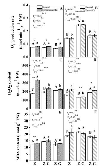 中国科学院成都生物研究所生态过程与生物多样性保育学科团组博士研究生李自龙在导师潘开文研究员的指导下,运用完全随机区组试验设计,研究了花椒(Zanthoxylum bungeanum)单作、花椒-辣椒和花椒-大豆间作中花椒及伴生物种对极端降雨的形态和生理生化响应。研究表明:极端降雨对三种间作系统中花椒的生长均有显著的抑制作用;然而,间作大豆提高了花椒叶片的蒸腾速率(Tr)、气孔导度(Gs)、叶片相对含水量(LRWC)、叶绿素a(Chl a)和类胡萝卜素(Car)含量,增强了花椒叶片抗氧化物歧化酶(SOD)活性。30天极端降雨恢复处理后,花椒-大豆间作模式显著提高了土壤硝态氮(NO3--N)含量、花椒叶片胞间二氧化碳浓度(Ci)和Tr,上调了可溶性糖和脯氨酸含量,增强了过氧化氢酶(CAT)活性。此外,大豆根生物量的增加通过有机质的转化为花椒提供了更多的氮素。然而,花椒-辣椒间作模式显著增加了花椒叶片ROS含量。两种伴生作物相比较,在以花椒为目标物种的农田生态系统中,大豆可提高目标物种花椒对极端降雨的适应能力及恢复力。该研究结果对花椒人工林的可持续管理和应对极端降雨灾害具有十分重要的指导意义。