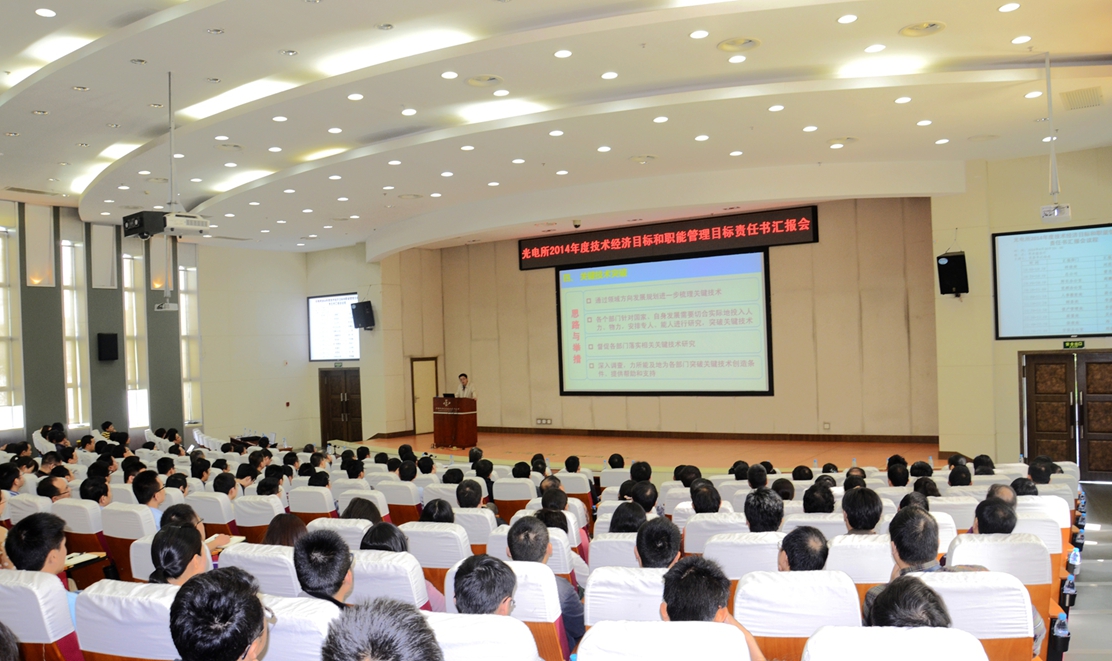 为明确光电所全年工作目标,细化各部门工作任务,增强全所职工的责任意识,调动全所职工的工作积极性,日前,光电所在学术报告厅举行2014年度技术经济目标和职能管理目标责任书汇报会。所领导班子成员、全所副研以上科研人员及机关干部参加了此次会议。汇报会由党委书记杨虎主持。科技处、科奥达集团公司、所长办公室等十个部门领导在会上作了报告。