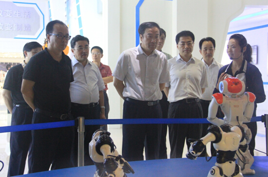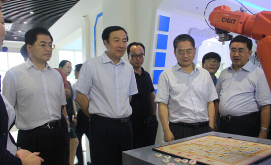 在重庆市委常委、常务副市长翁杰明,市委常委、两江新区党工委书记、管委会主任凌月明等陪同下,督导组一行参观了重庆研究院机器人体验馆,详细了解了迎宾机器人、排爆机器人、跳舞机器人、下棋机器人、工业机器人等功能及研发情况,并就机器人的市场应用及功能拓展等问题,与现场科研人员进行了交流。