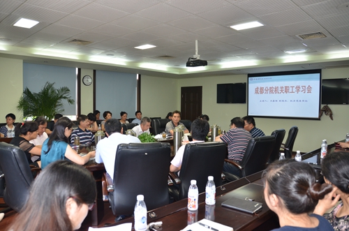 为进一步推进教育实践活动整改方案的落实,加强分院机关科学化、制度化、规范化建设, 7月21日,成都分院机关党委举办了分院机关职工学习会,对相关规章制度进行了宣讲。分院党组书记、常务副院长王学定,副院长陈锋,副院长、机关党委书记王嘉图出席会议,王嘉图主持会议。