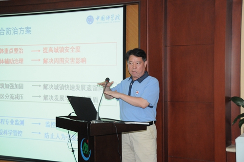 韦方强首先从历史沿革、学科建设、研究范畴等方面介绍了山地所的概况,重点突出了研究所的四大研究学科单元、两大关键支撑平台、国家重点野外台站等富有学科特点的发展情况,同时对西藏樟木口岸滑坡防治项目工作进行了简要介绍。樟木项目骨干科学家陈宁生研究员向记者们讲解了“西藏樟木口岸滑坡勘查评估与综合防治工程预可行性研究报告”的相关内容,从科学的层面加深了大家对樟木滑坡灾害的认识。随后,樟木项目骨干科学家王全才研究员从防治的角度提出了项目的综合治理方案,即“主体灾体重点整治,周边灾体辅助治理;市政建筑加强加固,道路绕避分流减压;治理工程专业监测,城镇建设科学管控”。