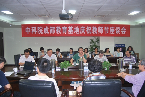 2014年9月10日,成都教育基地召开庆祝第30个教师节座谈会。成都分院副院长、教育基地管委会副主任陈锋主持会议。导师代表光电所副所长许冰研究员,成都生物所副所长刘庆研究员、李香真研究员,成都有机所总经理助理袁伟成研究员、刘白玲研究员,成都计算所总工程师钟勇研究员,成都分馆副馆长杨志萍研究员及各研究所部分导师代表、教育干部共聚一堂,欢庆教师节。
