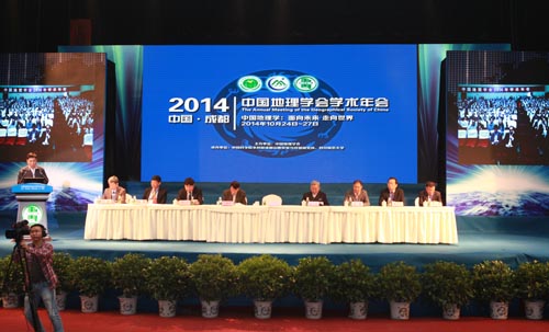 10月24日至27日,由中国地理学会主办、中科院成都山地所和四川师范大学联合承办的中国地理学会2014年学术年会在成都举行。来自全国34个省、自治区、直辖市、香港地区及尼泊尔、瑞士等近400个单位的1600多名专家、学者和研究生齐聚成都,围绕“中国地理学:面向未来 走向世界”的主题,全面总结回顾100年来中国地理学的发展,特别是改革开放30多年来,中国地理学在为我国经济腾飞、社会进步、城市化建设和资源环境管理等方面做出的重大贡献。