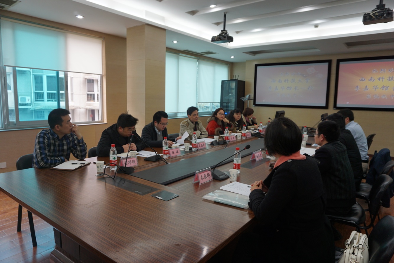 3月16日,西南科技大学图书馆馆长李嘉华一行访问中国科学院成都文献情报中心,并就双方合作事宜进行了座谈。成都文献情报中心主任方曙、副主任杨志萍,业务处、区域合作发展部、信息服务部负责人与相关同志参加了座谈会。