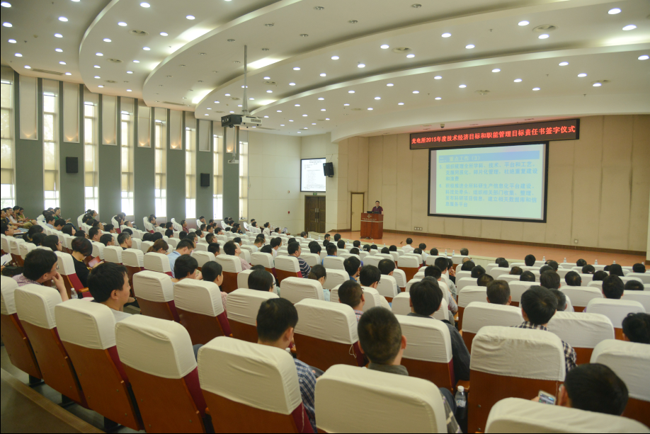 党委书记杨虎在会上讲话。他首先强调了签订技术经济目标和职能管理目标责任书的必要性。他说,年度责任目标是光电所长期战略目标的微观体现,年度重点工作是实现光电所整体目标的阶段性推进动作;同时,根据年度责任目标完成情况,可有效检视光电所本年度在科研创新和职能管理等方面的效果,为来年工作目标的设定提供前期情况评估参考,从而使光电所总体目标能够有条不紊地制定,并得到后期修订和有力落实,由此形成一套健全完善的良性循环系统。