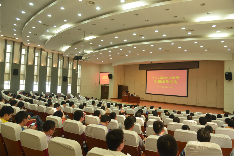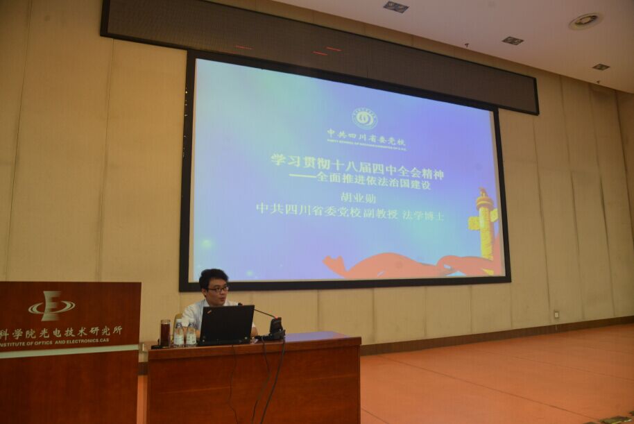 5月14日,光电所组织召开学习贯彻十八届四中全会精神专题辅导报告会。会议由党委书记、常务副所长杨虎主持,全所中层干部、副研及以上科研人员及职工代表200余人参加了学习。