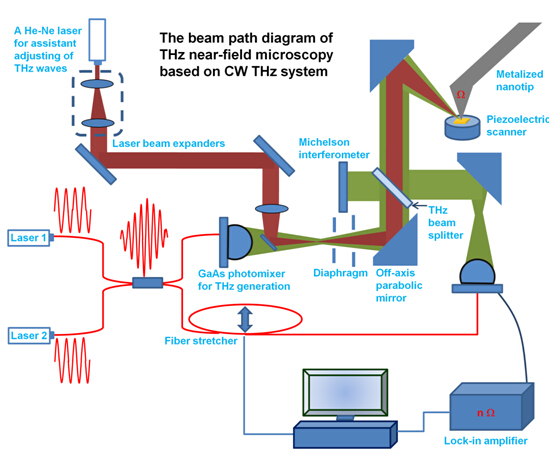 在中国科学院科研装备项目的支持下,该团队开展了生物大分子太赫兹成像光谱仪的研制工作,欲利用金属化纳米探针在纳米级针尖附近形成的局域增强太赫兹波来照射生物大分子,从而能突破光学衍射极限实现对纳米级大小的生物大分子进行成像。