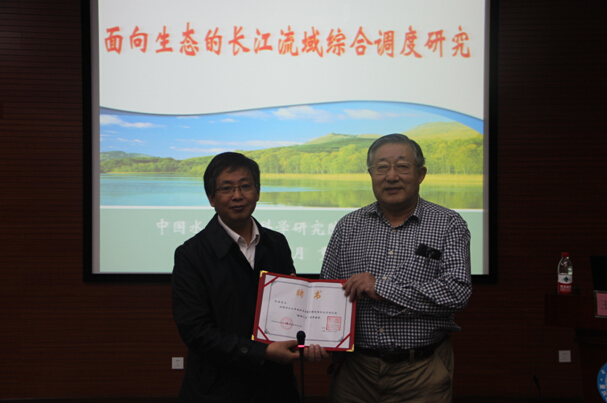 韦方强为王浩院士颁发“绿智之光”讲席教授聘书。王浩院士在报告中全面分析了长江流域的水文水资源、大型水库建设和经济社会发展需求的现状,并根据其多年研究的积累,提出了科学、生态的长江流域综合调度策略。