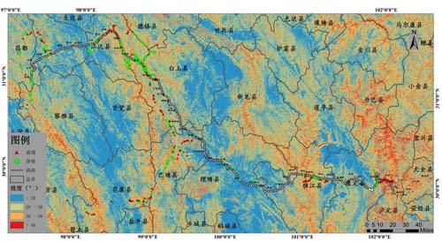 基于以上研究,项目组提出了川藏铁路康定—昌都段典型路段、重点灾点、主要车站铁路选线建议,向中铁二院集团有限公司提交了《川藏铁路康定—昌都段山地灾害分布规律分析与选线建议技术咨询报告》,目前已获采纳。