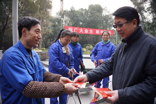 传统佳节之际,当大家都在与家人团聚时,华西坝园区内还有一群忙碌的身影坚守在工作岗位,为保障和维护安全卫生的园区辛勤工作着。2月6日,成都分院副院长、工会主席陈锋带队看望慰问了坚守在水电运营维护、园区卫生清扫、门卫等岗位的一线人员,带去分院和工会组织的关怀,对他们为建设安全和谐分院的辛勤付出表示衷心感谢,并向他们致以春节的问候!