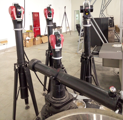 四台激光跟踪仪标定摆臂式轮廓仪旋转轴空间状态