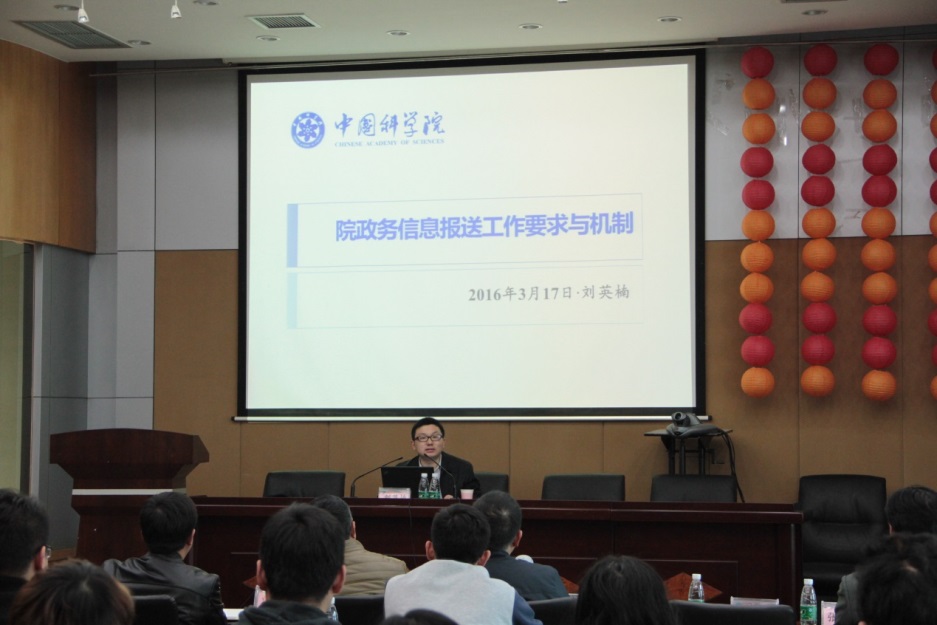 3月17日,成都文献情报中心举行政务信息工作专题报告会,邀请中科院科学传播局政务信息处处长刘英楠作题为《院政务信息报送工作要求与机制》的报告。报告由成都文献情报中心主任张志强研究员主持。成都生物研究所副所长刘刚君、成都分院综合办主任江晓波及来自光电所、成都山地所、成都生物所、重庆研究院、成都化学公司、成都信息公司、成都文献情报中心情报研究与知识服务人员、信息宣传与科学传播工作相关人员50多人听取了报告。