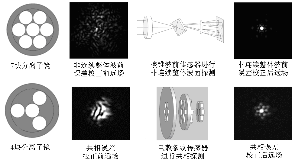 7块分离子镜的非连续整体波前误差探测与校正,4块分离子镜的共相误差探测与校正