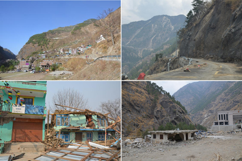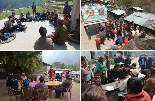中方成员在尼方合作者协助下,对重点研究区Rasuwa县的土地覆被遥感调查、水环境安全、山地灾害发育以及社区灾后恢复等问题给予了重点关注。Rasuwa县作为尼泊尔4·25强震的重灾区之一,其灾后恢复重建所面临的问题和取得的经验具有较强的代表意义。根据考察区的地形海拔、植被覆盖以及局部受灾程度,考察队遴选出Rasuwa县境内的典型样点,并采集到相对应的遥感解译校验信息、山地灾害空间分布及规模信息,以及水环境/土壤环境样品等。同时,考察队先后访问了Goljung、Chilime、Syaphru和Ramche等4个VDC以及Rasuwa地区最大的灾民安置点Betrawoti,并借助专题小组讨论(Focus Group Discussion)方式了解当地社区的灾后恢复情况。考察队中方成员还通过了中国吉隆口岸前往吉隆镇考察,对吉隆口岸至吉隆镇沿线土地覆被、山地灾害分布、水和土壤环境,以及吉隆镇的灾后重建状况作了初步调查。