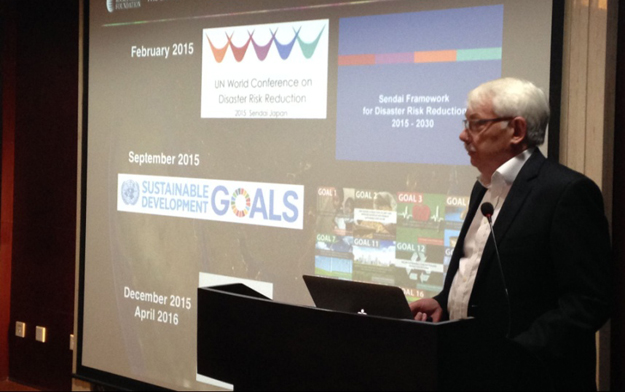 4月24日,应中国科学院山地灾害与地表过程重点实验室陈宁生研究员和国家自然科学基金国际合作与交流项目(中英)“地震山区可持续经济社会发展系统模型”的邀请,英国皇家工程院、皇家艺术院Peter Head院士访问成都山地所,并作了题为“Integrating disaster risk reduction into the transition to the ecological civilization”的精彩学术报告。副所长崔鹏院士、中科院山地灾害与地表过程重点实验室主任陈晓清研究员、副主任苏立君研究员、项目英方负责人英国布里斯托大学Han Dawei教授、英国生态可持续发展中心项目主管Stephen Passmore、项目中方负责人陈宁生研究员出席报告会。成都山地所科研人员和研究生70余人聆听了报告。报告会由陈晓清研究员主持。