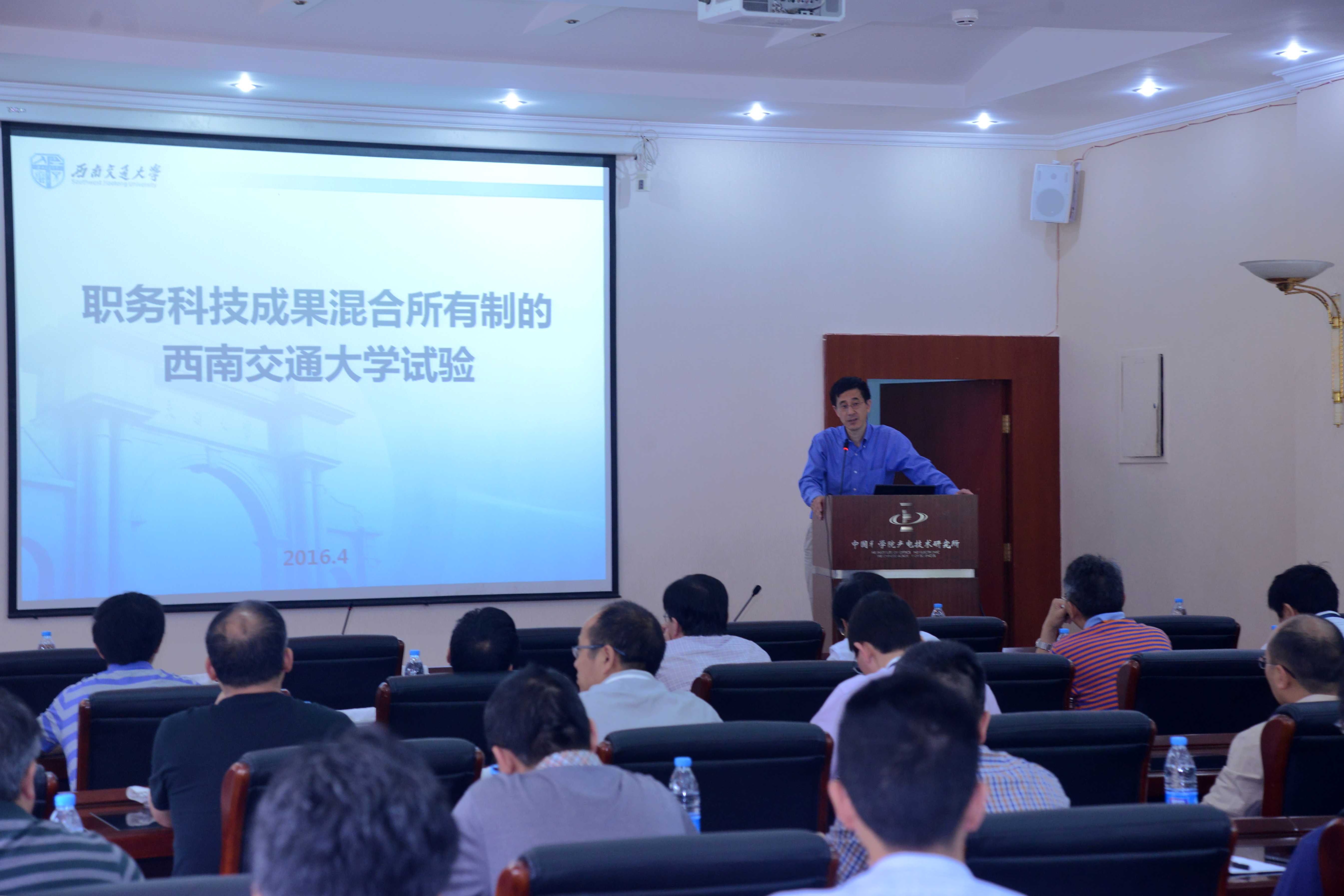 康凯宁教授从高校科技成果转化现状、科技成果转化的形势、西南科技大学在科技成果混合所有制改革上的探索等几个方面进行了介绍,同时结合国家和地方政府有关政策规定,利用西南交通大学科技园典型案例,深入浅出地介绍了在成果转化方面的成功经验。
