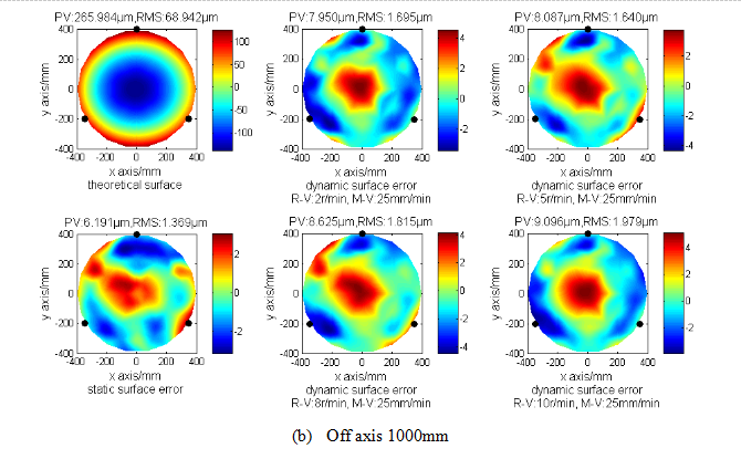 4m f/1.5主镜加工中,不同离轴位置情况下磨盘静态面形误差与多种转速下动态面形误差对比图
