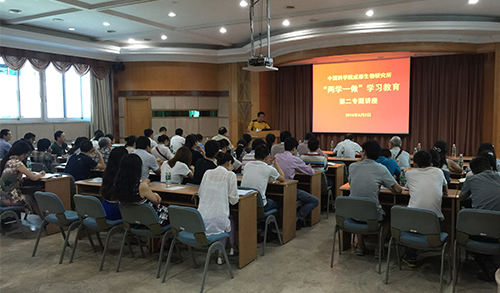 6月3日,中科院成都生物所党委召开“两学一做”学习教育专题学习会,邀请中科院成都分院宣讲团成员,原光电所党委书记陈胜利同志作“两学一做”第二专题讲座。会议由党委书记、副所长叶彦主持,全所近100名党员参加学习会。