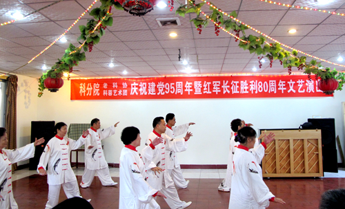 一百多名院属成都地区各单位的离退休老同志参与了此次活动,她们带来了合唱、舞蹈、太极拳、服装表演、戏曲花鼓等形式多样的演出。在演出过程中还穿插建党和红军长征知识问答,老同志踊跃抢答,将演出推向高潮。会上,南充市商业银行还为抢答获胜者颁奖。