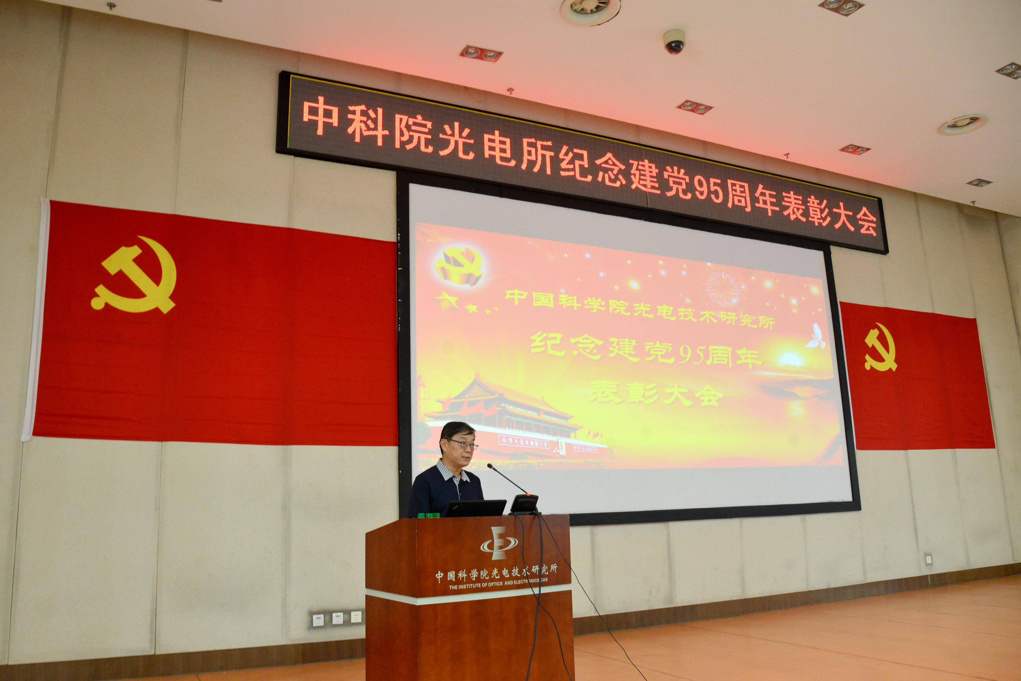为隆重纪念中国共产党成立95周年,结合“两学一做”学习教育,6月30日,光电所在学术报告厅举办纪念建党95周年表彰大会暨党课报告会。光电所党委中心组成员、副研以上党员、机关全体党员、离退休党员代表及学生党员代表参加了本次大会。会议由党委副书记、副所长魏全忠主持。