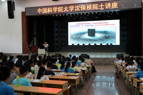 7月3日,中国科学院院士沈保根为绵阳中学1000多名准高中生作题为“我们生活在磁的空间里”科普讲座。