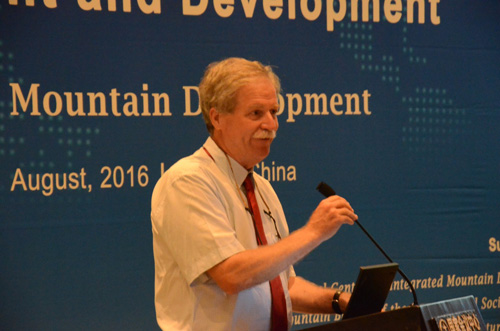 国际山地综合发展中心David Molden教授发表了题为“Rethinking Sustainable Mountain Development in the Hindu Kush Himalayas”的大会特邀报告。他强调了山地研究跨国界合作的重要性,并指出,在全球气候变化、自然灾害频发的新背景下,山区发展所面临的机遇与挑战并存,推动山区可持续发展是全世界的共同责任。