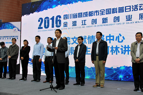 9月23日,由中共四川省委宣传部、四川省科学技术协会、四川省教育厅、四川省科学技术厅、中科院成都分院联合举办的“2016年四川省暨成都市全国科普日活动•中国科学院科技创新年度巡展2016”启动仪式在成都温江区举行。四川省政府副秘书长罗治平,四川省科协党组成员、副主席刘进,中科院文献情报中心党委书记兼副主任何林,成都文献情报中心副主任杨志萍,成都分院四级高管李雁琴等出席开幕式。会议由四川省科协党组成员、机关党委书记肖咸君主持。
