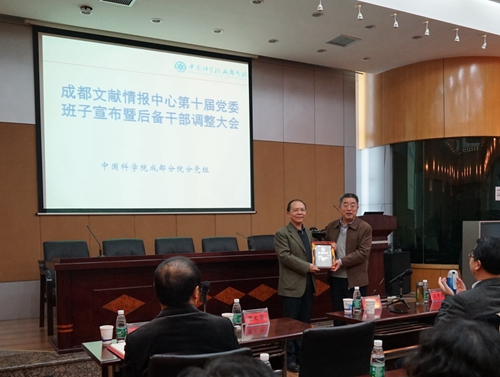 王学定首先宣读了中科院党组的任命文件和《中共中科院成都分院直属单位党委关于中共中科院成都文献情报中心第十届党委、纪委组成人员的批复》,邓勇任成都文献情报中心党委书记,房俊民任成都文献情报中心纪委书记。