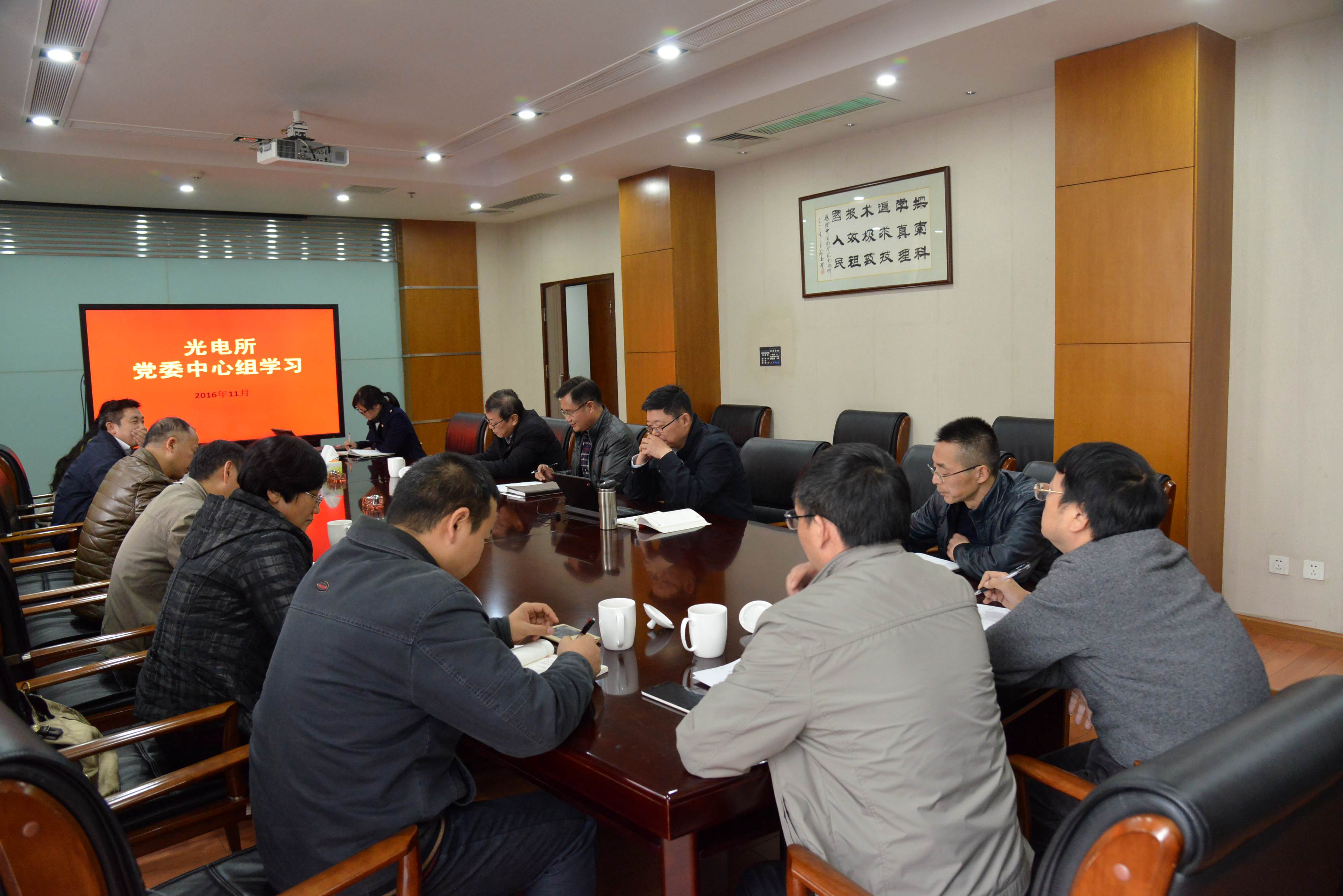 11月23日下午,中科院光电所党委中心组召开“两学一做”第四专题中心组学习研讨会,全体中心组成员结合“学宗旨、创新科技为民”主题开展讨论。党委书记杨虎主持学习会。