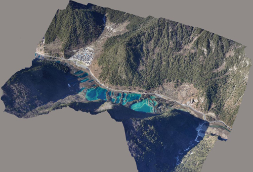同时,该团队还选择了人口最多、受泥石流等地质灾害威胁最大的树正寨,以及2014年发生大规模山洪的热西寨作为地质灾害遥感监测示范点,分别进行了无人机航摄及三维建模,为九寨沟地质灾害的无人机多时序动态遥感监测打下了良好基础,并展示了无人机遥感技术在旅游资源调查和展示方面的应用潜力。