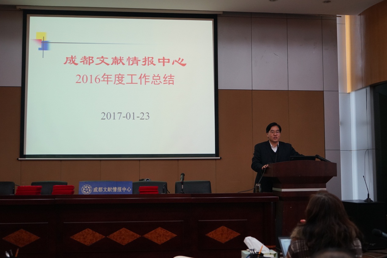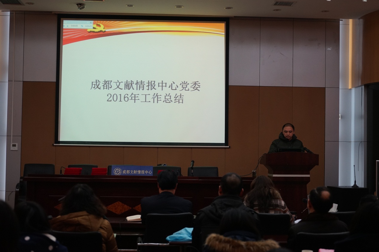 2017年1月23日下午,成都文献情报中心召开2016年度工作总结及表彰大会。中心主任张志强、党委书记邓勇、副主任杨志萍和全体在职职工参加了会议。会议由邓勇主持。
