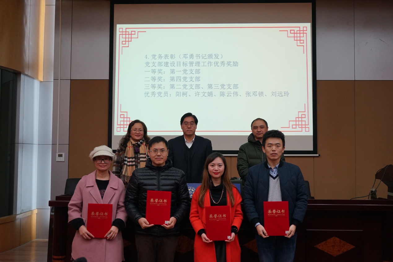 会上,表彰了2016年度做出突出成绩的优秀部门情报研究部和信息服务部;优秀团队高技术光电材料物理团队、《天然产物研究与开发》期刊团队;优秀单项石墨烯技术与产业发展决策咨询、促进智库发展的科学传播体系建设工作、中国科学院专利技术挖掘与技术预见云平台、成都文献情报中心制度体系建设工作;优秀个人鄢小燕、田丁、张娴等13人;表彰了科学传播先进部门综合办公室,政务信息报送先进个人王立娜、张娟、田倩飞;信息宣传先进个人张邓锁、许文娟、陈锐;表彰了安全先进部门、安全先进个人等;以及表彰了先进党支部、优秀共产党员等受到了表彰。