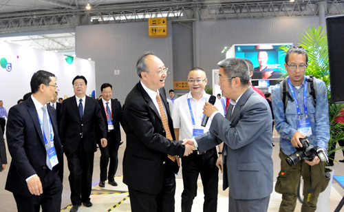 四川省委副书记、省长尹力等领导视察中科院展厅,驻足参观了地面站望远镜、空间在轨3D打印制造、360°全景摄像机、人脸识别系统,听取了成都分院分党组书记、常务副院长王学定关于电子投票系统、精子检测仪、便携式违禁化学品现场检测质谱技术等介绍。
