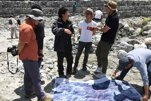 途中,媒体记者们时常冒雨考察,不顾疲劳采访报道,在行车途中完成稿件。途中亲身遭遇川藏公路海通沟路段滚石崩塌、获悉6·24茂县山体垮塌等事故,他们或现场采访、或电话连线,及时向公众传递灾害现场信息,第一时间解答公众对雨季山地灾害的关注和疑虑。