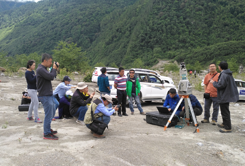 从21日开始,媒体记者们从成都出发,历时十天,经四川省的雅安、泸定、康定、雅江、理塘、巴塘,跨越金沙江进入西藏的芒康、左贡、八宿、波密、米林,最后到达此行目的地林芝。考察采访期间,媒体记者一行先后在中科院科学传播局局长周德进、科学传播局新闻联络处处长熊德、陈晓清、纪委书记蔡长江和游勇研究员的带领下,沿途经过了雅砻江、大渡河、金沙江、怒江、澜沧江、雅鲁藏布江流域,并重点考察了对川藏交通廊道工程建设及运行影响较大的日地沟泥石流、毛垭坝滑坡、旺北村滑坡、森格宗泥石流、米堆沟冰湖溃决泥石流、古乡沟冰水泥石流、易贡滑坡堰塞湖灾害链等典型灾害点,实地考察了川藏公路、川藏铁路、川藏高速公路沿线的大渡河、怒江峡谷、帕隆藏布等典型路段的山地灾害情况,并听取了中科院STS计划“川藏铁路山地灾害分布规律、风险分析与防治试验示范”项目组关于川藏铁路沿线山地灾害特征、选线方案、减灾防灾对策和防治方案等的介绍。