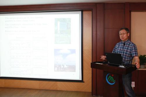 交流期间,曾庆存院士以“气象灾害的监测、预测和防治调度”为题,围绕气象科学百年来的进步、我国气象灾害防治现状、未来改进的方向以及中国洪水与滑坡泥石流动力数值预报系统的研制等作了精彩的学术报告。戴永久教授以“全球高分辨率土壤数据研制与陆面模拟”为题,围绕高分辨率土壤数据研究背景、数据源处理方法和资料共享等领域进行了深入的分析。曾旭斌教授以“Global and Regional Land Surface Dataset Development”为题,分别从气温、陆地植被、降水和雪水等多个方面讲述了如何获得高精度和高可靠性数据的方法与重要性,为我们如何看待和使用现存繁杂数据提供了新的视角。