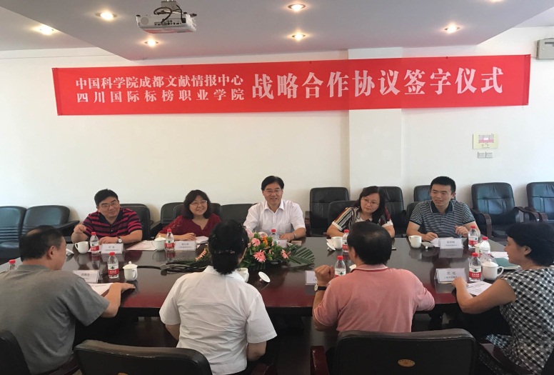 7月17日,中国科学院成都文献情报中心与四川国际标榜职业学院在标榜学院举行合作座谈会和战略合作协议签约仪式暨标榜学院科技文献分馆和标榜学院查新分中心揭牌仪式。成都文献情报中心主任张志强、副主任杨志萍,四川国际标榜学院董事长兼院长阎红、党委书记任再生、执行院长叶建忠、图书馆馆长沈治宏等20余人参加了会议。会议由叶建忠主持。