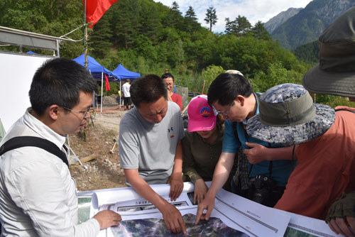九寨沟“8.8”地震发生以来,成都山地所专家组在九寨沟地震灾区持续开展山地灾害调查工作。结合工作任务需要,14日至15日专家组一行11人分组开展工作,完成丹祖沟震中区及五花海断裂带沿线灾害的重点调查。