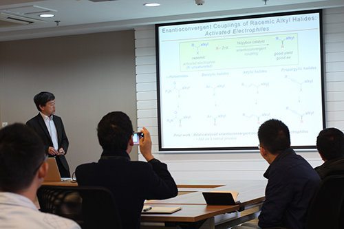报告会上,Gregory C. Fu教授分享其研究小组在过渡金属催化烷基亲电试剂的交叉偶联反应,特别是不对称交叉偶联反应构建碳-碳键、碳-氮键等研究上的研究成果和最新进展。成都生物所相关科研人员和研究生积极听取报告,并就共同感兴趣的相关科学问题与Gregory C. Fu教授进行了热烈的讨论。