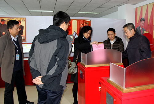 中科信息常务副总经理、电子选举系统总负责人史志明详细介绍了系统服务党的“十九大”的工作,演示了后台选票统计系统的工作流程。孙晓明还参观了曾为历届党和国家重大会议服务的八代票箱,对中科信息自主研发的高速图像识别技术表示肯定,对几代科技工作者呕心沥血为电子选举系统的研发、不断创新升级所做出的努力表示赞扬。