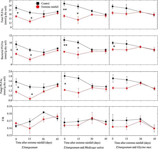 该研究成果获得国家自然科学基金(#31370632和31500517)资助。近日以Soybean supplementation increases the resilience of microbial and nematode communities in soil toextreme rainfall in an agroforestry system为题在线发表于国际期刊 Science of the Total Environment,2018, 626: 776-784.