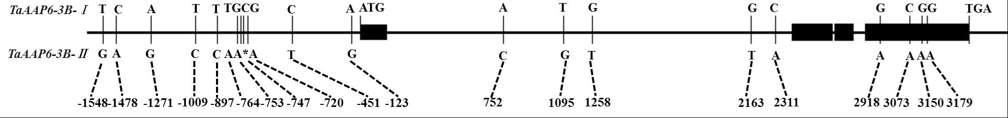 TaAAP6-3B在自然群体中的等位变异