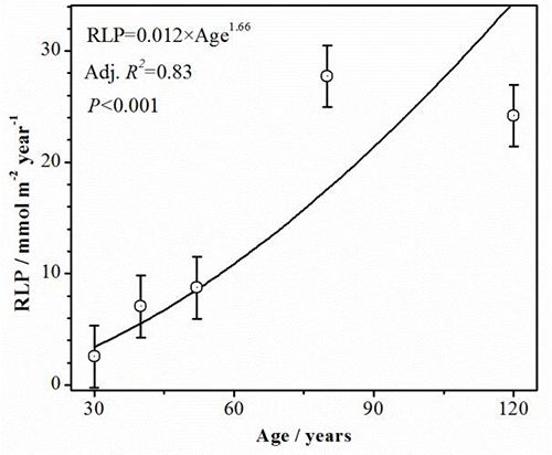 图1  成土早期(0—120年)P风化速率随成土年龄快速升高